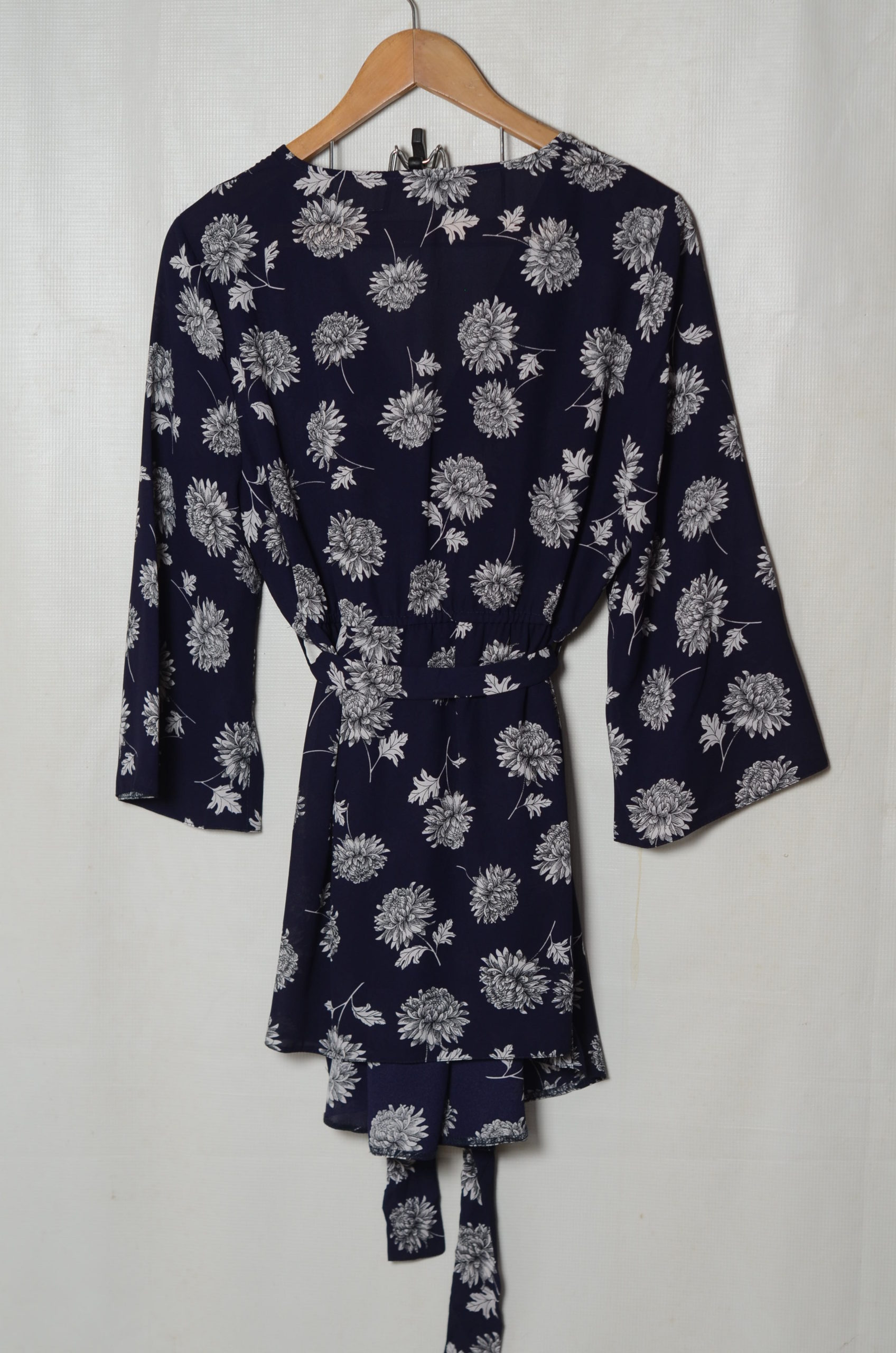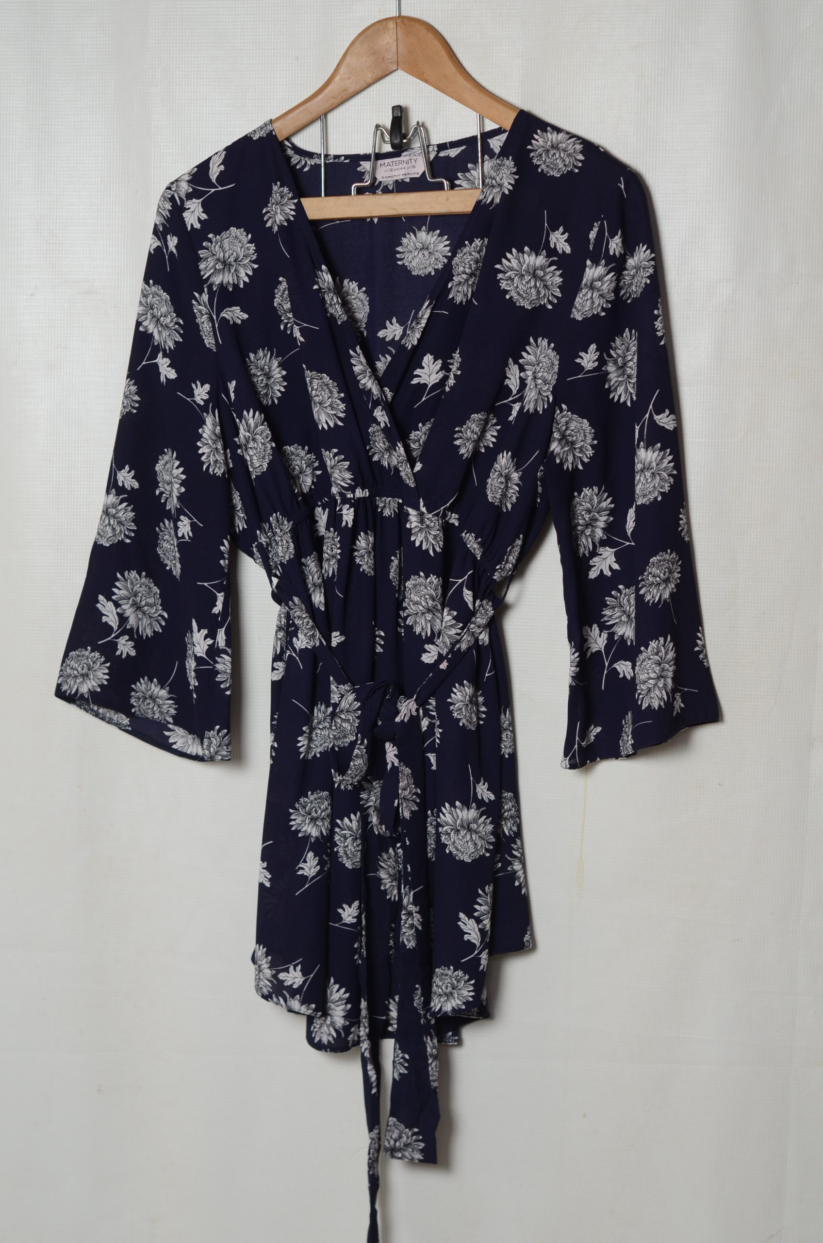 Dorothy Perkins lady’s elbow length top with white flower design, size 16