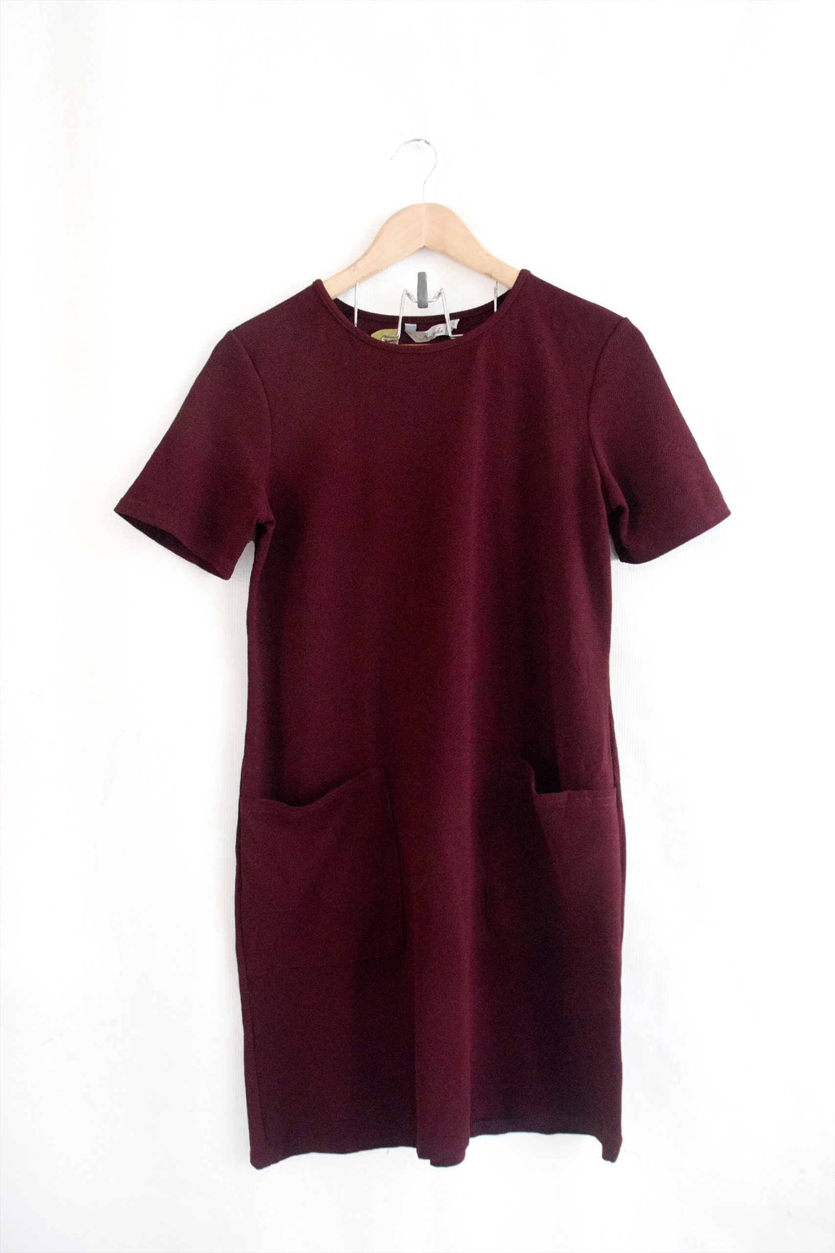 Peacocks / Lady’s Oxblood coloured shift dress with 2 front pocket, short sleeve, size 10